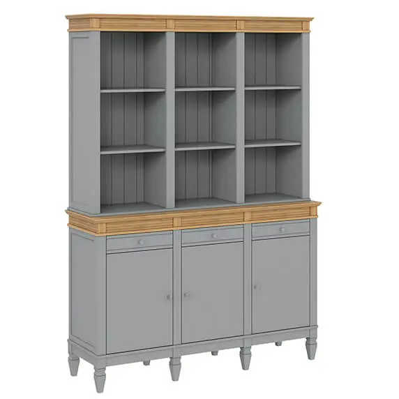Буфет визуально разделен на 3 секции которые укомплектованы шестью полками сверху,