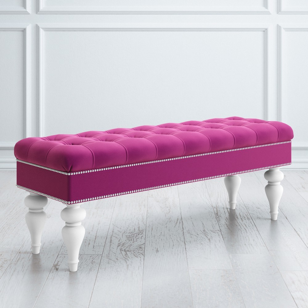 В этой скамье удачно сочетается изысканный стиль Прованс и оригинальные современные решения. В качестве обивки используется микровельвет малинового цвета, а ножки скамьи изготовлены из натуральной древесины. Такая оттеночная палитра выглядит эффектно, что позволяет использовать скамью в качестве яркого дизайнерского акцента. Сборка не требуется.