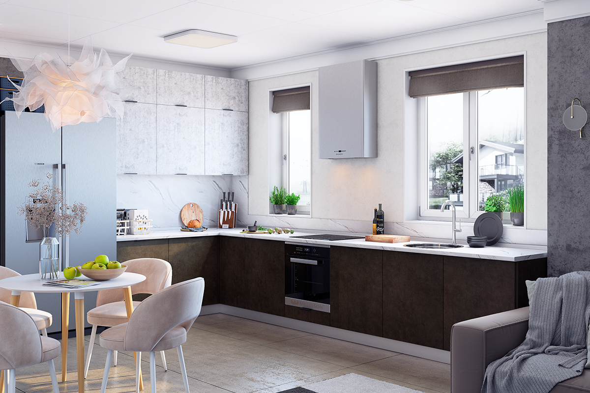Обращаем внимание, что компания не производит выравнивание полов, стен, укладку керамической плитки, подключение бытовой техники к электросети и водоснабжению, а также других производственных работ, не указанных в спецификации к кухне.