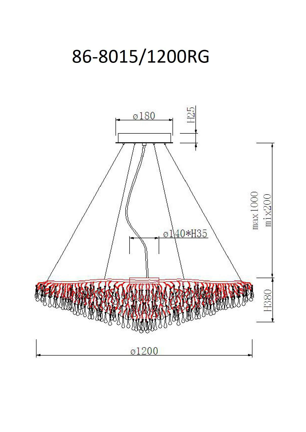 86-8015/1200RG Люстра круглая d.120*h.38см, металл цвет шампань