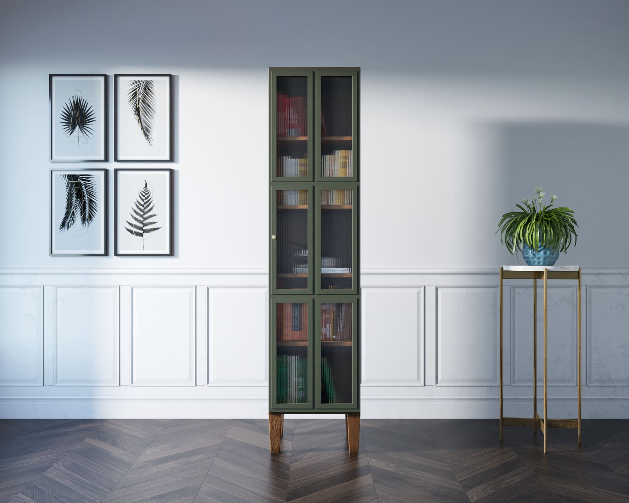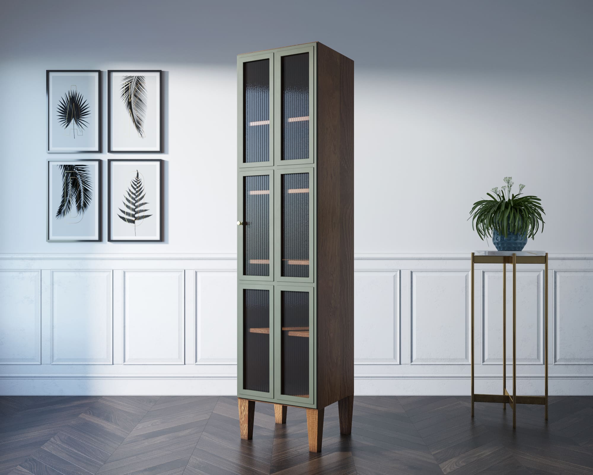 Фасады имеют приятный зеленый оттенок, который стильно сочетается с рифленым стеклом.