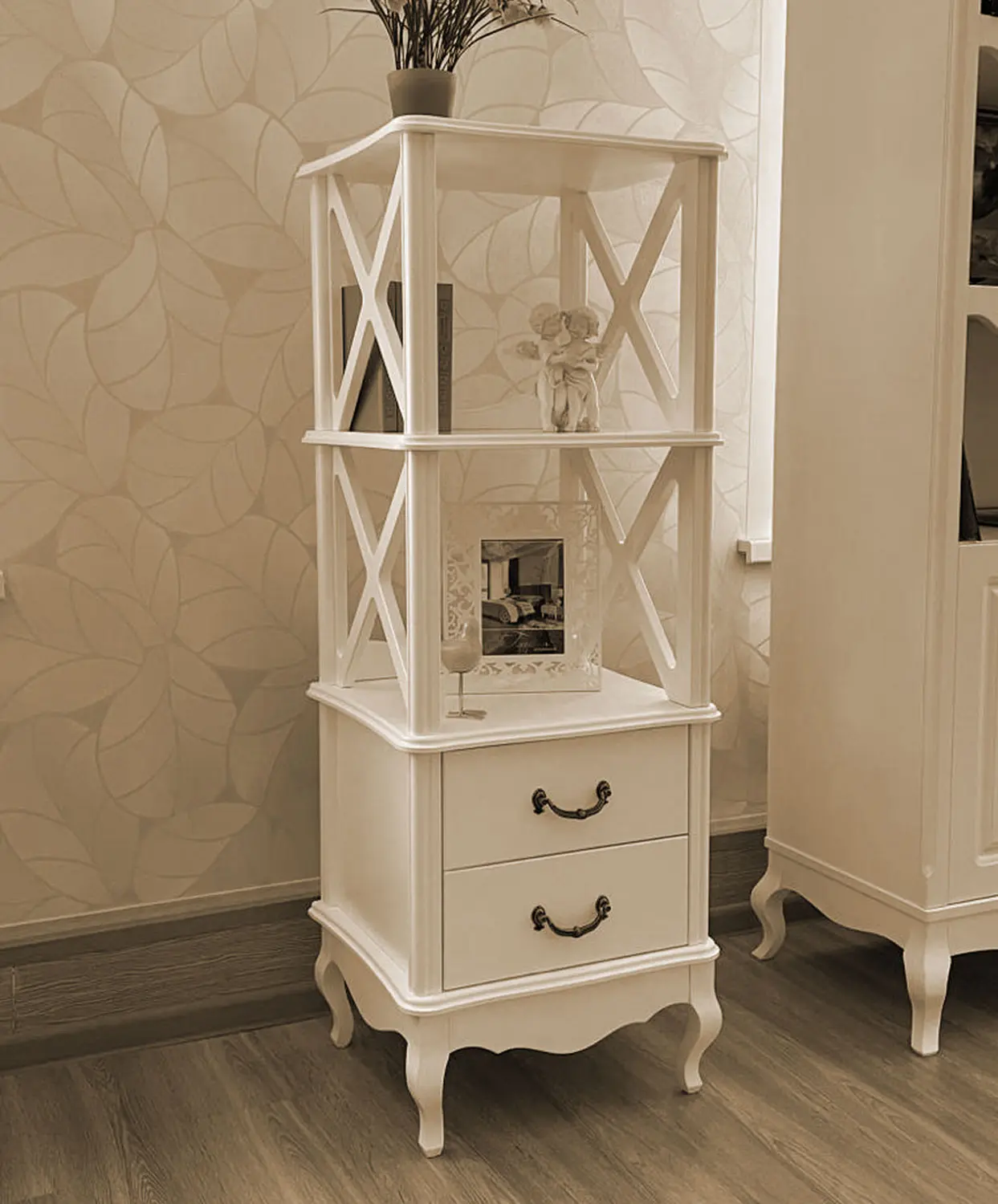 Функциональная, воздушная и универсальная этажерка с двумя выдвижными ящиками и полками.