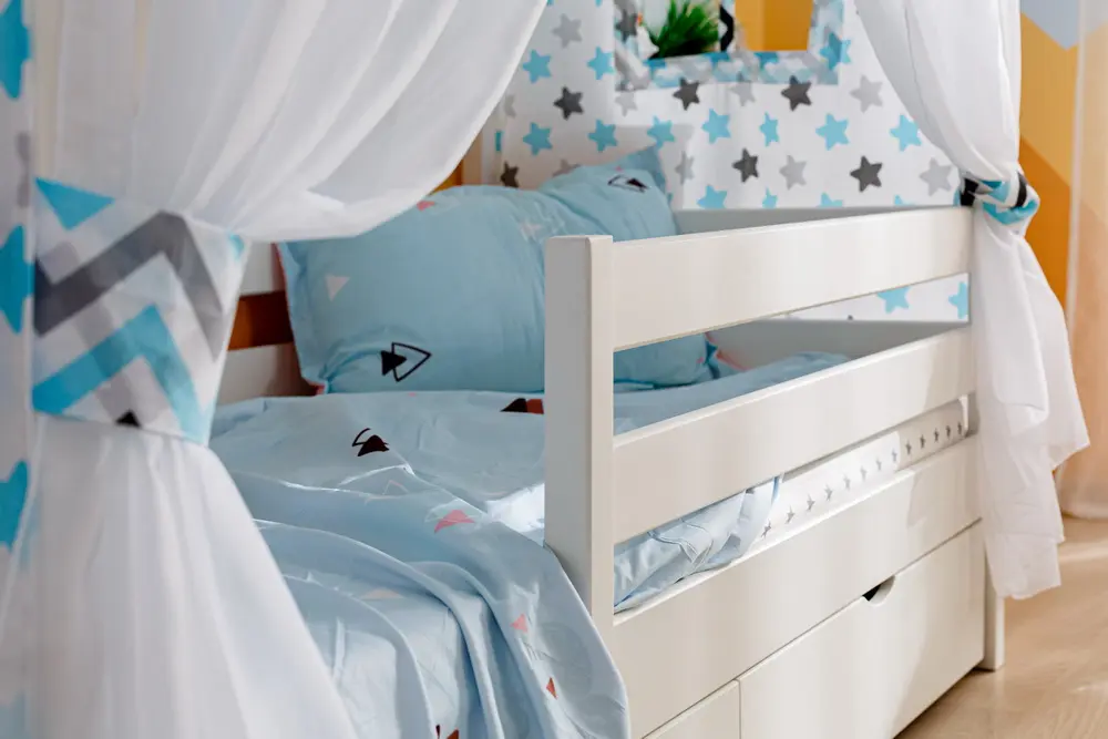 Мы предлагаем различные варианты комплектации, чтобы удовлетворить потребности каждого клиента. Вы можете выбрать один длинный или два коротких бортика, а также заказать ящики и накидку на кровать отдельно.