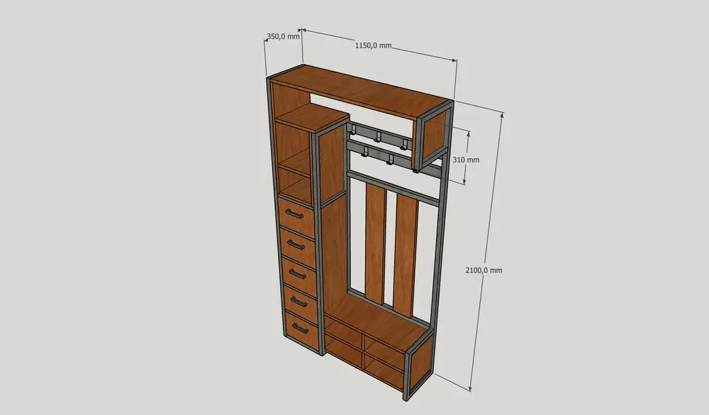 Ш 1150 x Гл 350 x В 2100