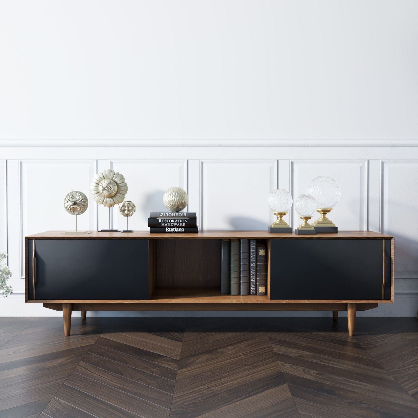 Консоль под TV массив дерева в Скандинавском стиле "Bruni Black"