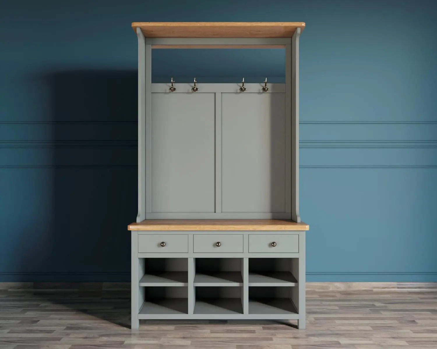 Несколько выдвижных ящиков и открытые полки для обуви помогут сохранить порядок в прихожей.