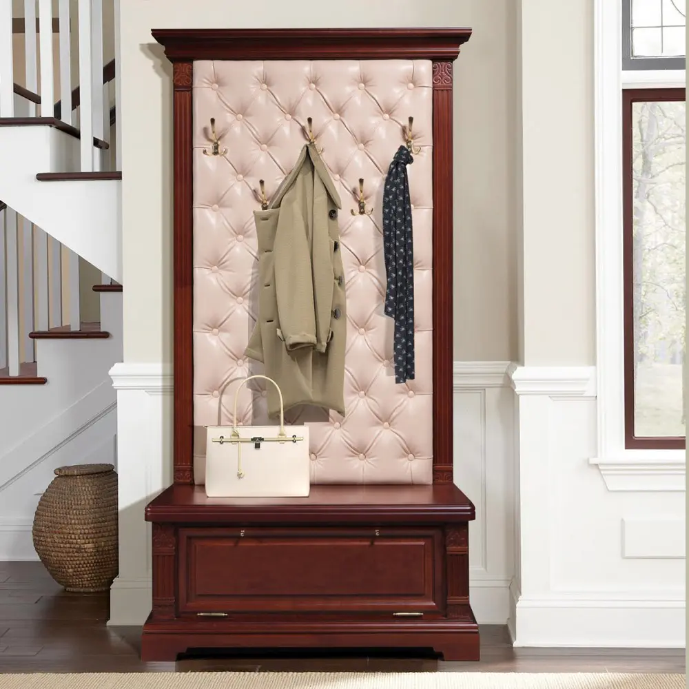 Мебель для прихожей «Порто» отличается изысканным дизайном с декором в классическом стиле и спокойными аристократичными цветами отделки. В коллекции есть обувные тумбы, комоды с ящиками, одностворчатые и двустворчатые шкафы для одежды, вешалки-панели, настенные зеркала.