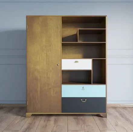 Стеллаж "Aquarelle Birch" изготавливается вручную из массива березы. Ящики и некоторые вкладки из березовой фанеры. Фурнитура - латунь. Изделие покрывается итальянскими лакокрасочными материалами Sayerlack.