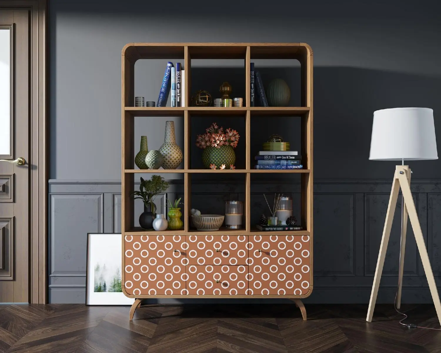 Стеллаж с ящиками дерево "Ellipse" принт 3