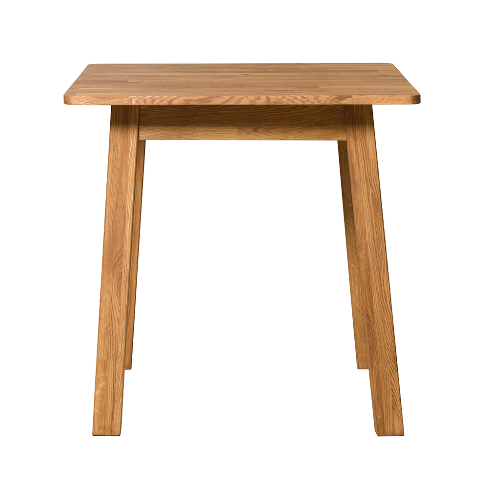 Стол нераздвижной, имеет высокие тонкие ножки. Доступно шесть вариантов отделки, на выбор: бейц-масло, дуб отбеленный, дуб паркетный, дуб венге, темная вишня, итальянский орех. Размеры стола 750х750х750 мм, вес 19 кг. Поставляется в разобранном виде. Гарантийный срок – 1 год.