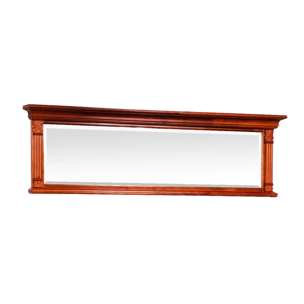 Прямоугольное зеркало обрамлено в деревянную раму из массива березы.