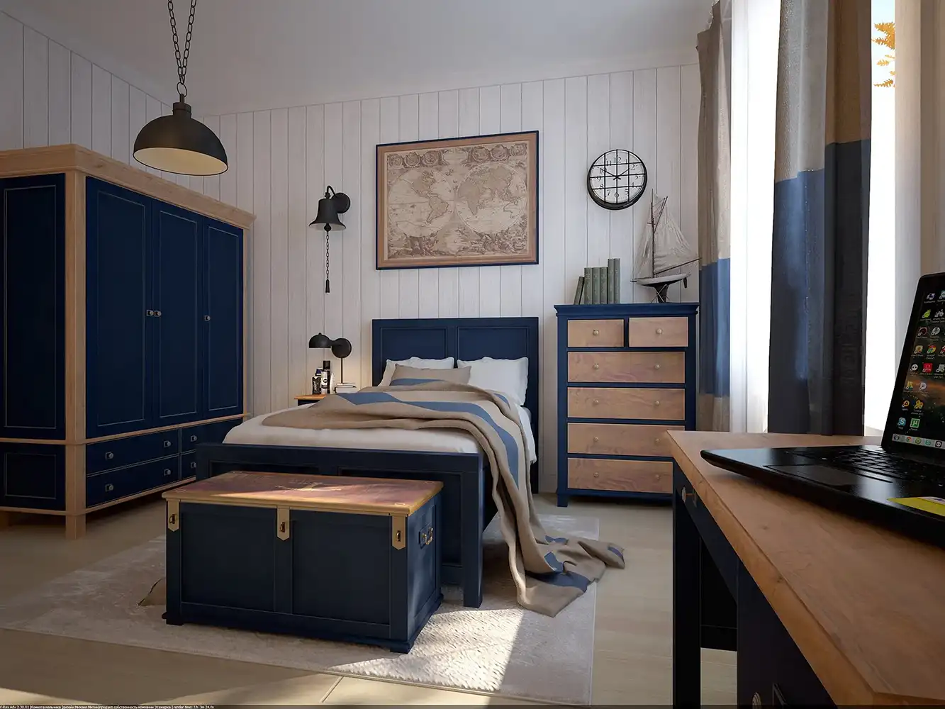 Коллекция «Жюль Верн» – это дизайнерские шкафы, стеллажи, прихожие, комоды, кровати и письменные столы в стиле «Кантри». Из предметов этой коллекции можно составить оригинальный и цельный интерьер гостиной, спальни или детской комнаты в духе морской романтики.